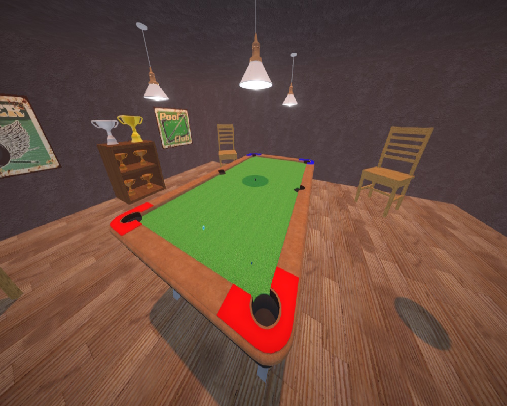 Soccer on a snooker table, each team has two holes to defend, and middle holes are neutral, giving you time to get items