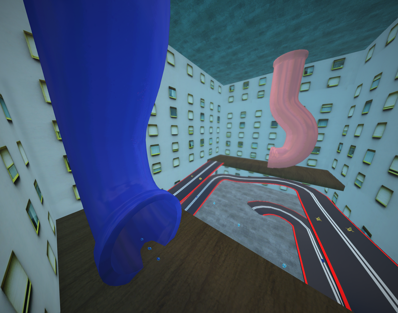 A vertical arena, reach the roof using the pipes. Works with FFA and CTF