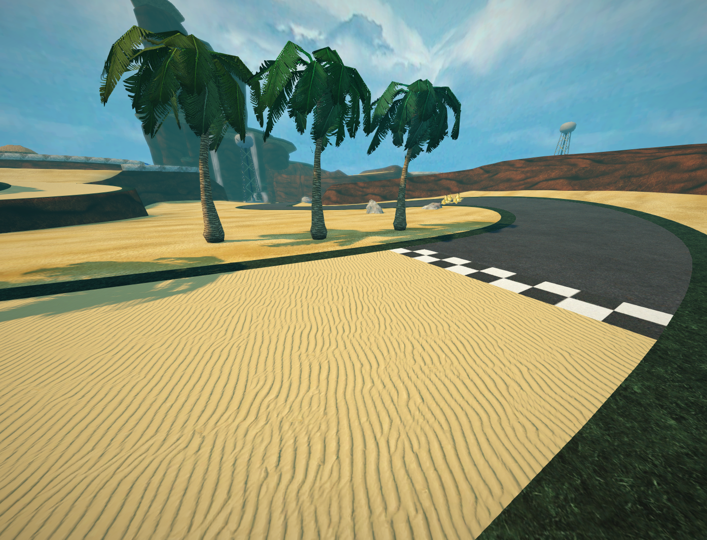 A racetrack in a beach that changes based on your level of experience with the game